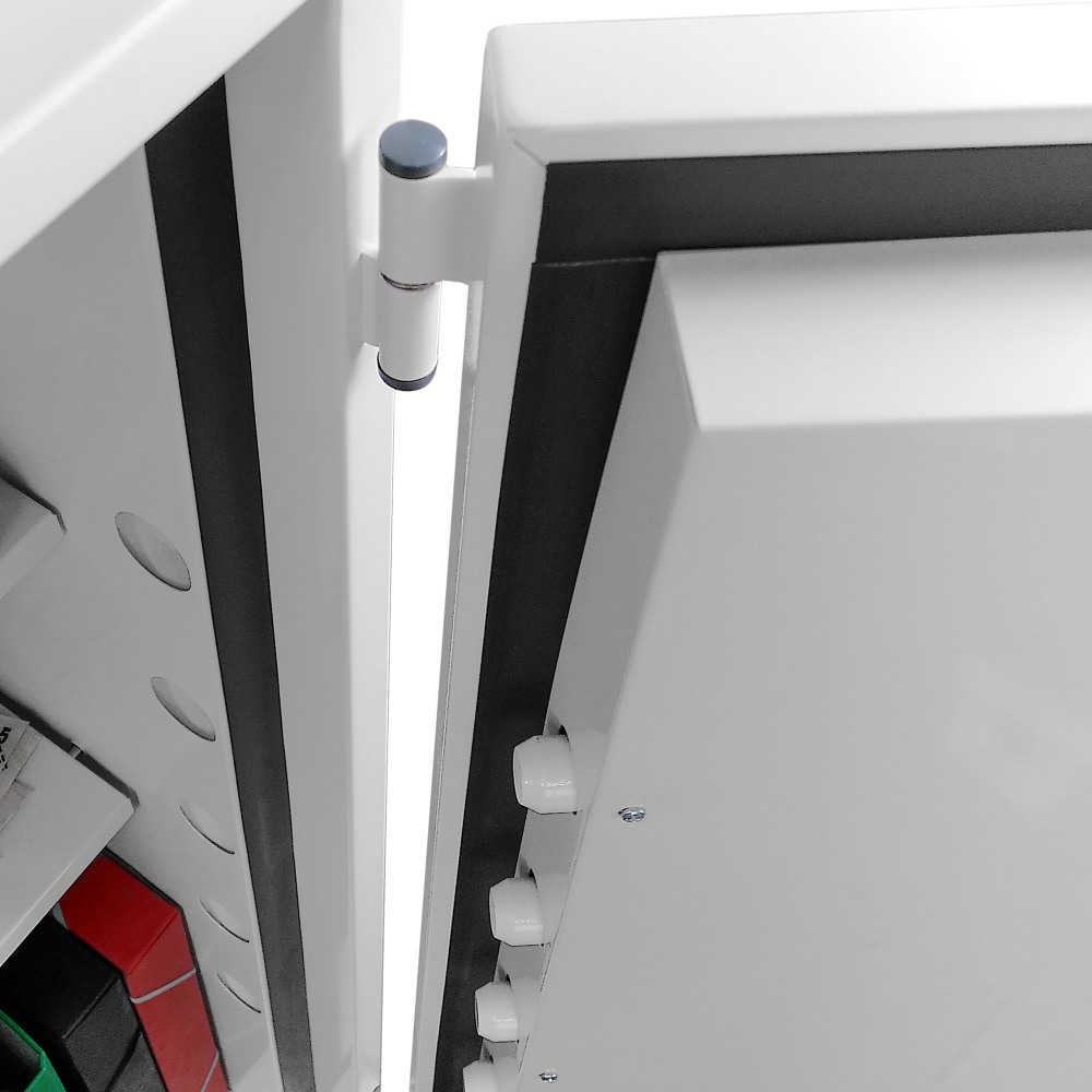 - CONSTRUCTION - Double wall construction with high grade concrete infill to provide both fire and burglary protection. Anti-drill plate protection, three way live locking bolts and fixed dog bolts, provide a door of massive strength and resistance to pry or forced attack.