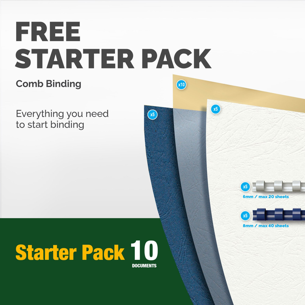 Includes starter kit for binding 10 documents
