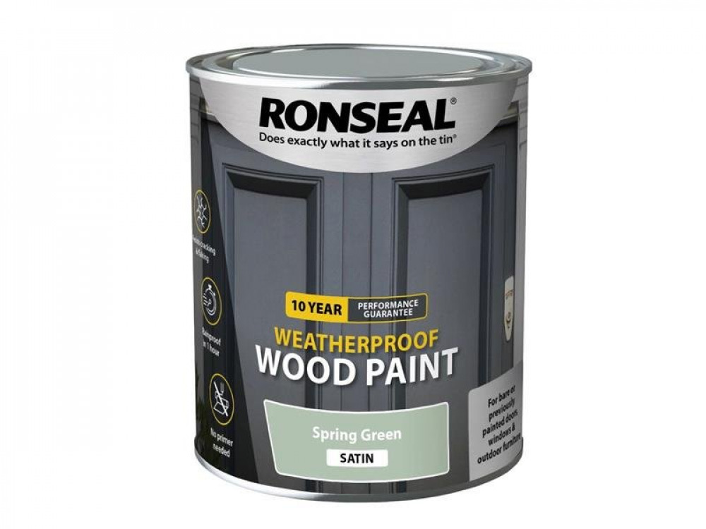 - Ronseal 10 Year Weatherproof Wood Paint Spring Green Satin 750ml