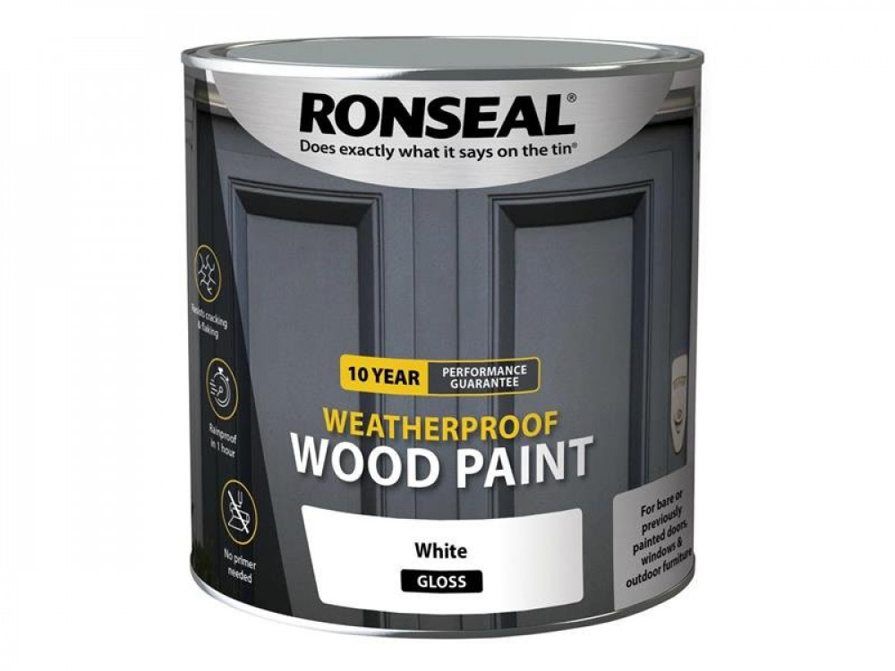 - Ronseal 10 Year Weatherproof Wood Paint White Gloss 2.5 litre