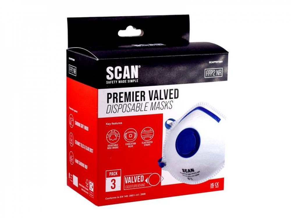 Scan Moulded Disposable Mask Valved FFP2 Protection (Pack 3)