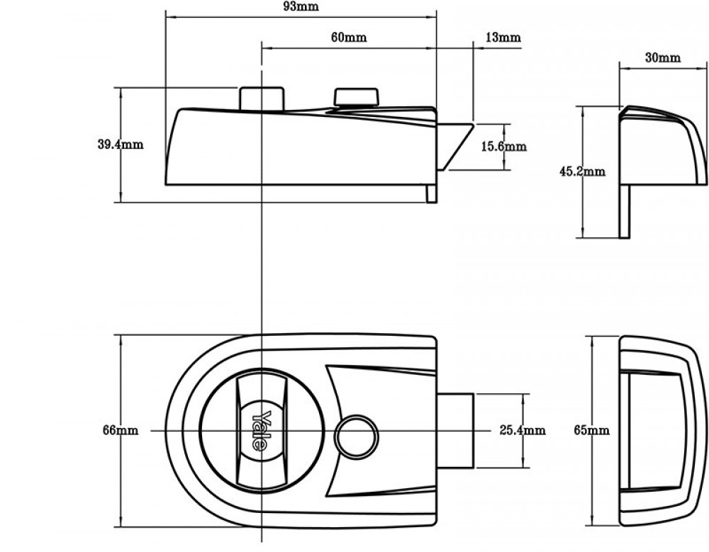 Yale Locks Y3 Nightlatch Modern 60mm Backset Black Finish Visi